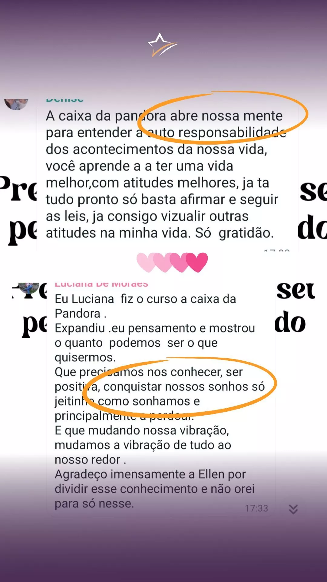 Porque Caixa de Pandora não é apenas conhecimento – é experiência e transformação real. Você não só aprende, mas sente a mudança acontecendo na prática. Veja os depoimentos.
